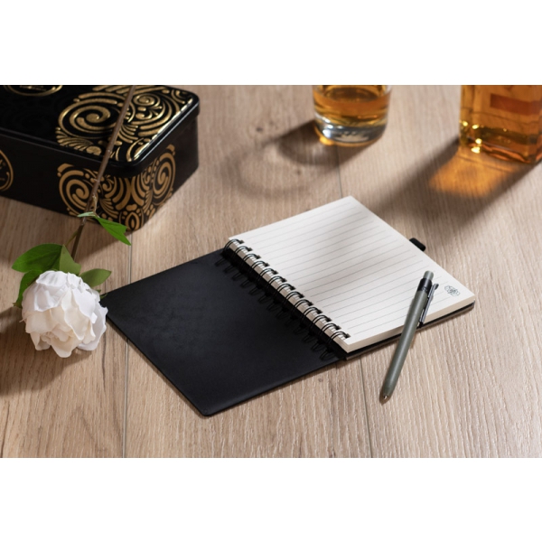 ARSEN to zestaw składający się z długopisu oraz notesu z twardą okładką i praktyczną spiralą. Dzięki 70 kartkom w linie, posiada mnóstwo miejsca na zapisywanie pomysłów, planów czy notatek z konferencji. Zestaw ARSEN został wyprodukowany z recyklingowanych kartonów po mleku.