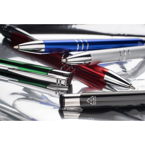 Przedstawiamy bestsellerowy długopis KALIPSO o eleganckiej chromowanej powierzchni, teraz dostępny w nowej, ekologicznej odsłonie: wykonany z aluminium z recyklingu (rKALIPSO). Ten automatyczny długopis z trzema stylowymi ringami i niebieskim wkładem, łączy nowoczesny design z funkcjonalnością. Chromowana powierzchnia nadaje mu prestiżowy wygląd, idealny do profesjonalnych zastosowań. Możliwość znakowania logo na powierzchni czyni go doskonałym narzędziem promocyjnym.