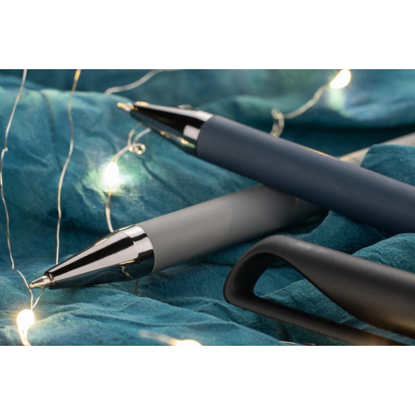 Długopis TENO to połączenie elegancji, funkcjonalności i wyjątkowego designu, czyniąc go doskonałym upominkiem reklamowym. Dzięki wykorzystaniu materiału typu soft touch, zapewnia on komfort i wygodę podczas pisania. Przekręcany mechanizm ułatwia korzystanie i eliminuje konieczność szukania zatyczki.Niezwykłym elementem wyróżniającym długopis TENO jest ozdobna blaszka, która dodatkowo może pełnić funkcję lusterka! To także idealne miejsce do efektownego znakowania produktu, co sprawia, że długopis staje się nie tylko praktycznym narzędziem do pisania, ale również skutecznym nośnikiem reklamy.