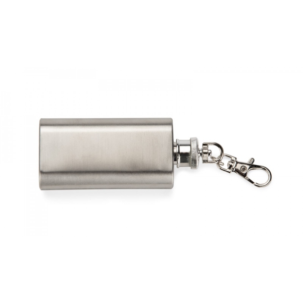 Brelok piersiówka FLASIK 50 ml to elegancki i praktyczny gadżet reklamowy, łączący funkcjonalność mini piersiówki z wygodą breloka. Wykonany ze stali nierdzewnej o matowym wykończeniu, zapewnia trwałość i stylowy wygląd. Szczelne zamknięcie umożliwia bezpieczne przechowywanie 50 ml płynu, a karabińczyk pozwala na łatwe przypięcie do kluczy, plecaka czy paska. Idealny jako oryginalny upominek firmowy z możliwością znakowania grawerem laserowym. Świetny wybór dla marek poszukujących niebanalnych i trwałych gadżetów promocyjnych.