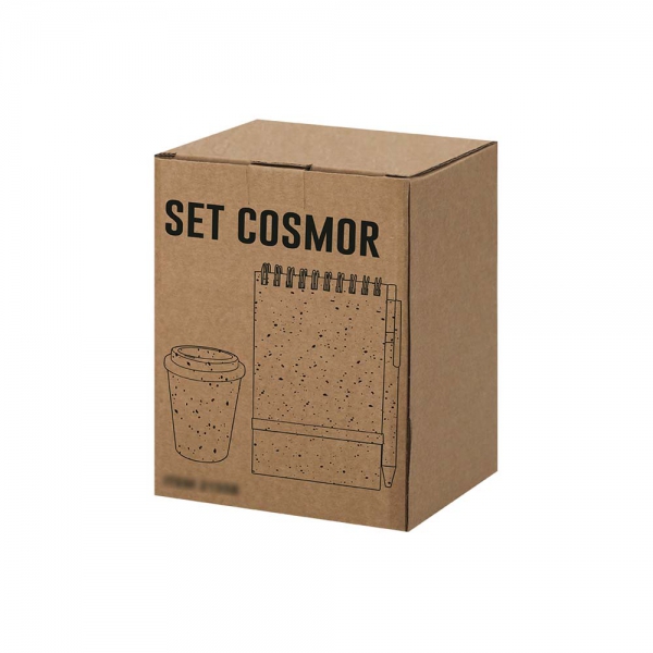 Zestaw biurowy, kubek podróżny 370 ml, notatnik, posiada 70 kartek w linie, elastyczna okładka, długopis z wkładem w niebieskim kolorze, produkt wykonany ze słomy pszenicznej i PP