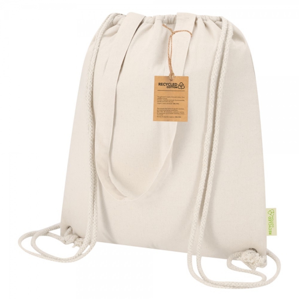 Worek termoizolacyjny ze sznurkiem umożliwiającym noszenie na plecach, produkt wykonany z bawełny 140 g/m2 z recyklingu i aluminium